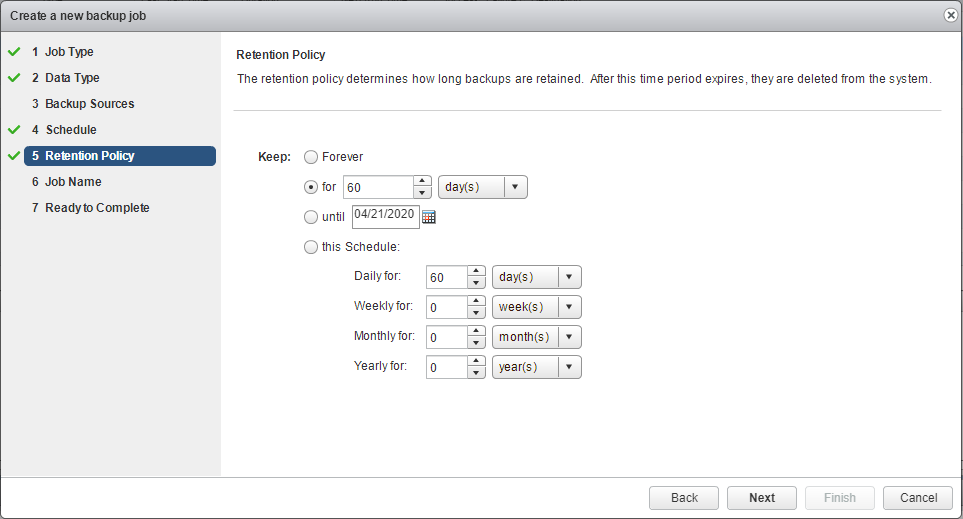 続いて「Retention Policy」です。ここでは世代管理に関する設定を行います。