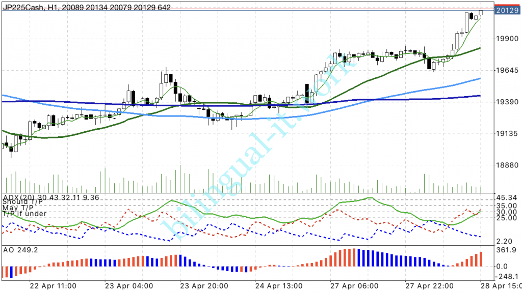 2020年4月28日22時頃ですが、XMTradingのJP225Cashでは20,000円を超えました。