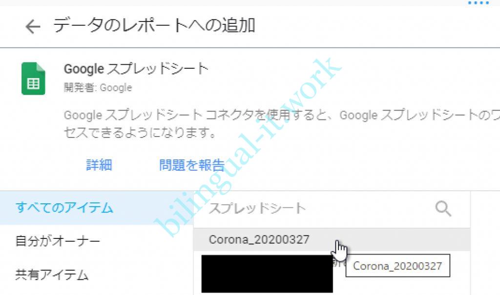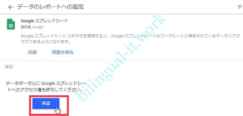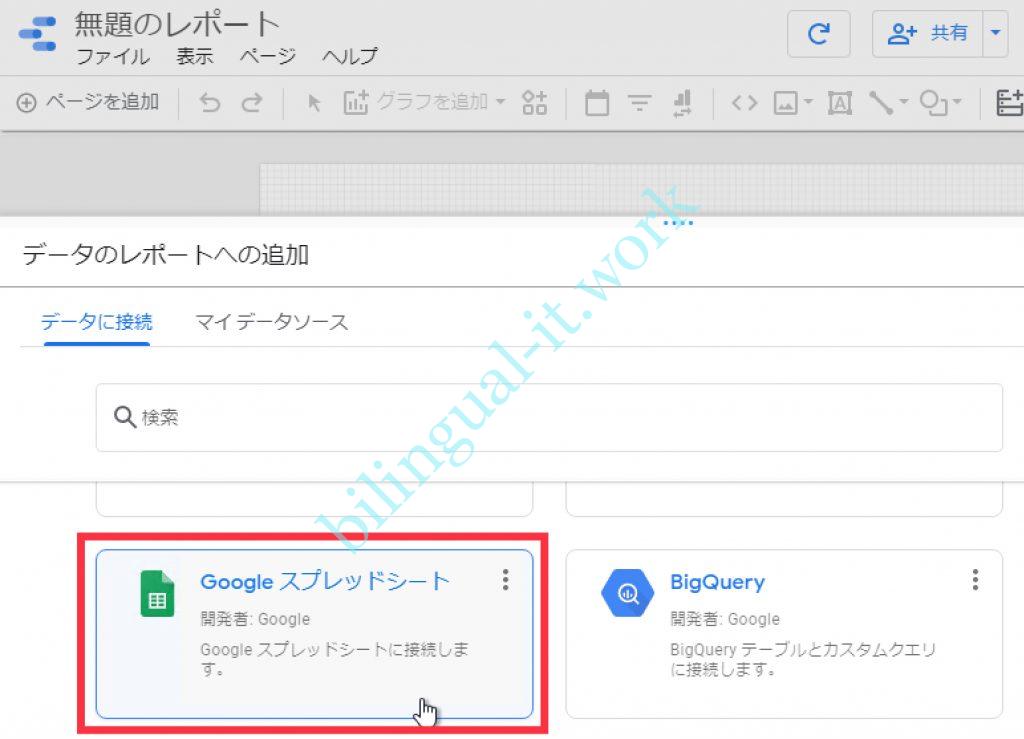 次に「データのレポートへの追加」からGoogleスプレッドシートを選択します。