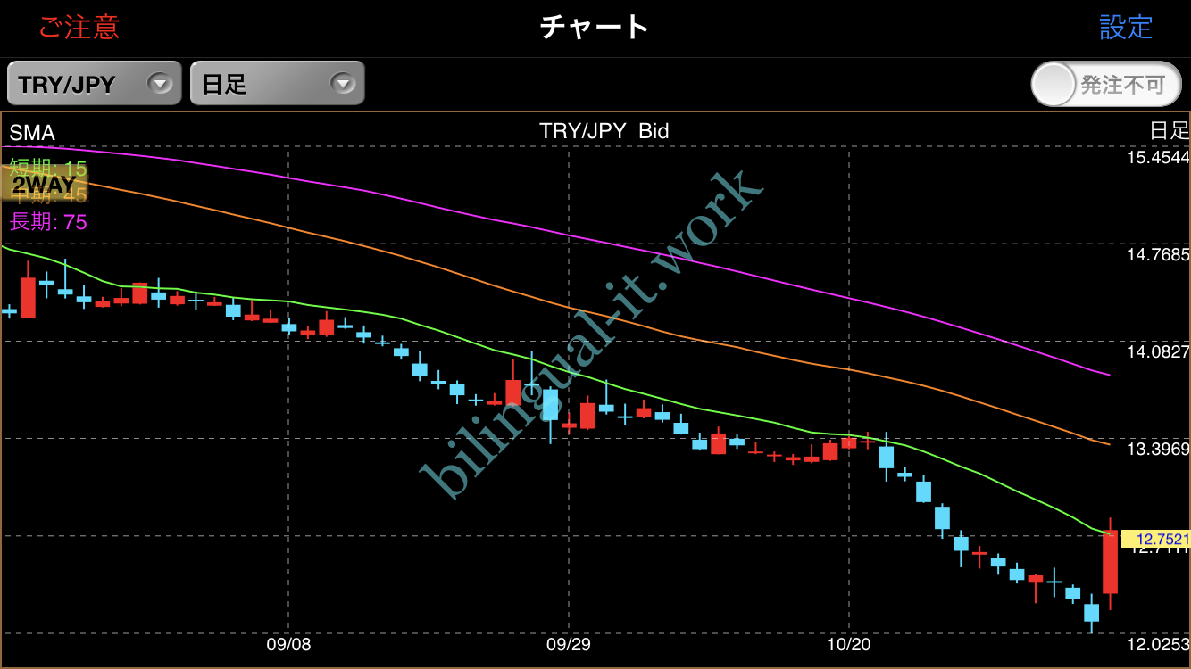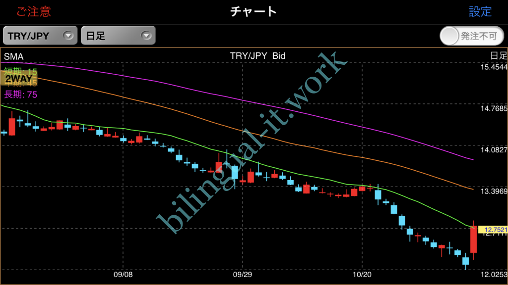 2020年11月9日の19時過ぎ、TRYJPYのチャートを見ると、トルコが急上昇してました。