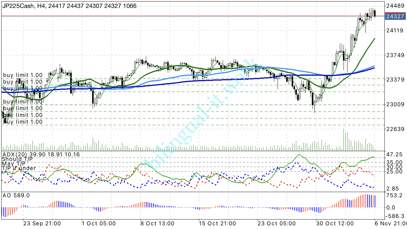 普段のトレンドを考えると、おおよそですが、USDJPYと日経平均株価の動きは連動しており、USDJPYが上がると日経平均株価も上がります。