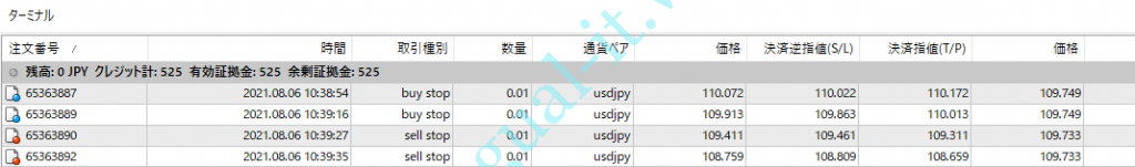 こんな感じで他のUSD絡みの通貨も注文して行きます。