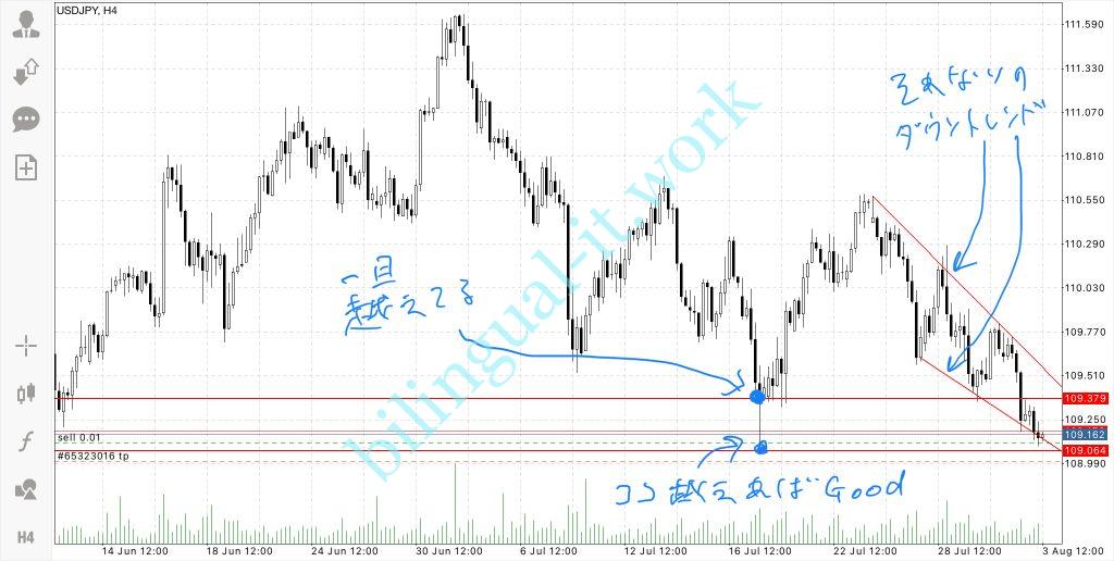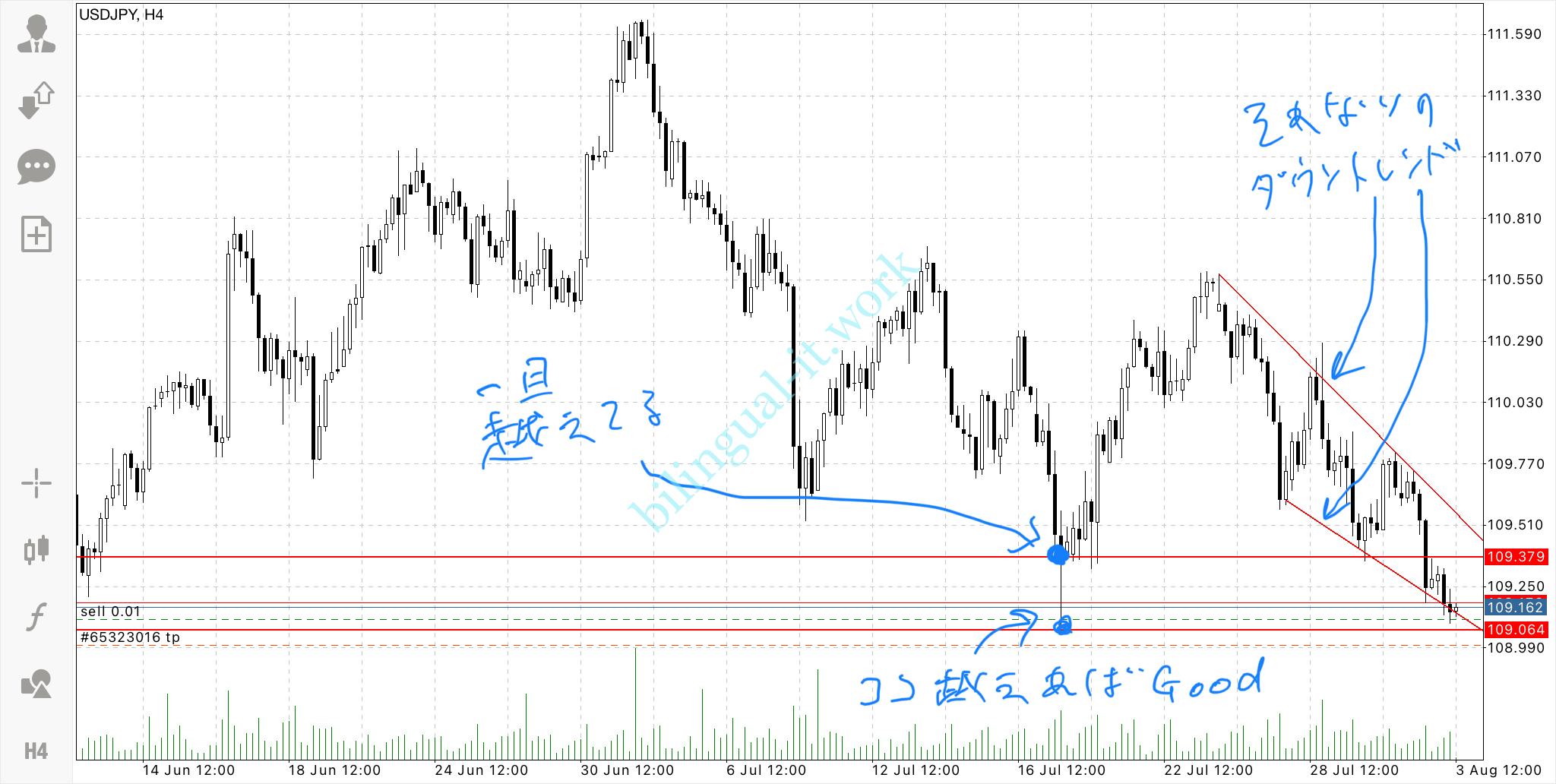 さて、約500円をどこまで増やせるかと言うトライですが、USDJPYに目をつけてみました。2021年8月3日の夕方のことです。