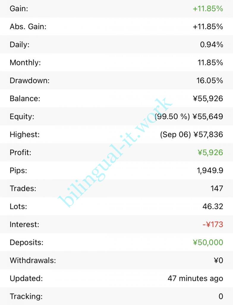 こんにちは。8月25日から稼働させているEA134号ですが、米雇用統計を受け、大きなドローダウンを経験しつつも、良い感じに推移しています。
