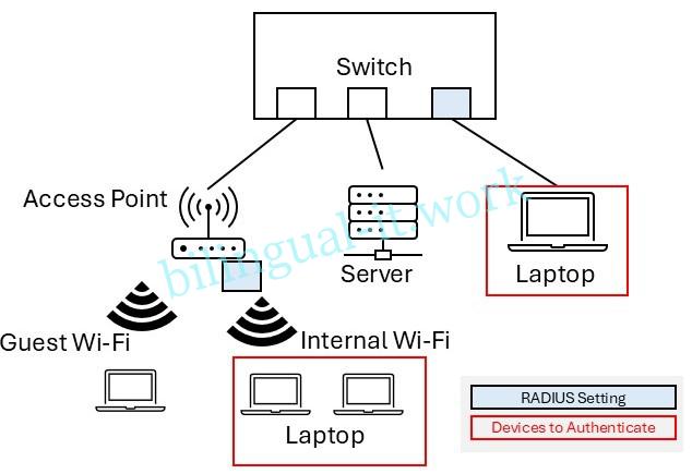 スイッチの場合は、認証したい機器がつながるポートに設定します。そのポートに機器が繋がると、それをトリガーに認証が走ります。